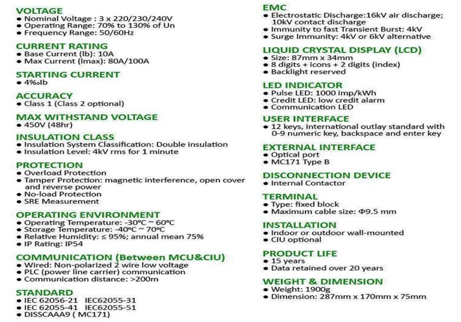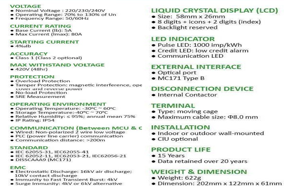 Counter Display, Single Tariff Accuracy Class : 1.0